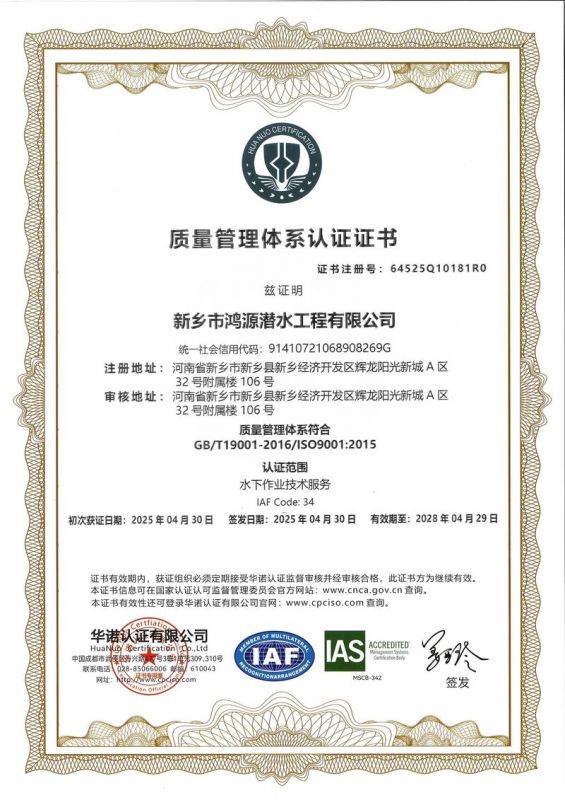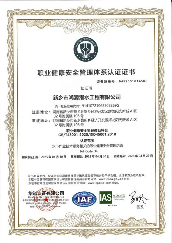 新鄉(xiāng)市鴻源潛水工程有限公司,有從事潛水行業(yè)二十多年的潛水團(tuán)隊(duì)。公司具有獨(dú)立法人資格,注冊(cè)資金600萬元。   公司的潛水人員、潛水檢測(cè)人員、潛水焊接人員均經(jīng)過正規(guī)培訓(xùn),全部持有國內(nèi)權(quán)威機(jī)構(gòu)頒發(fā)的資質(zhì)證書。我公司水下焊接可靠,質(zhì)量優(yōu)良,技術(shù)過硬,可水下焊接鋼管樁,水下焊接犧牲陽極鋅塊,水下焊接連接梁,水下封堵焊接等等施工,報(bào)價(jià)合理,拒絕暴利,竭誠為您服務(wù)!水下電焊工程,水下電焊報(bào)價(jià)合理水廠電廠的水池、水道清淤、泵房清理、管道鋪放、攔污柵清污、更換閘門起落、導(dǎo)流洞、水庫壩體等維修施工水下補(bǔ)強(qiáng)加固:對(duì)水利電力系統(tǒng)水庫、大壩及沿海內(nèi)河港口、碼頭等水工建筑物水下鋼結(jié)構(gòu)或混凝土結(jié)構(gòu)缺陷進(jìn)行。無論是對(duì)現(xiàn)在或?qū)恚紝⑹且豁?xiàng)非常有意義的工作。水下焊接將成為水下作業(yè),水下安裝,水下維修等水下作業(yè)工程中不可或缺的重要工藝手段.公司堅(jiān)持“先進(jìn)的技術(shù)設(shè)備.優(yōu)質(zhì)的服務(wù)質(zhì)量.服務(wù)效率.熱情的服務(wù)態(tài)度,為生產(chǎn)經(jīng)營理念,以拒絕暴利合理收費(fèi)為原則立足全國市場(chǎng)。我們將以優(yōu)質(zhì)的產(chǎn)品與售后服務(wù)來打造用戶良好體驗(yàn)。愿同新老客戶竭誠合作、互惠互利、共創(chuàng)輝煌!水下電焊工程,水下電焊報(bào)價(jià)合理,鋼圍堰清淤公司鴻源-水下電焊工程,水下電焊報(bào)價(jià)合理,鋼圍堰清淤公司,水下電焊工程。      新鄉(xiāng)市鴻源潛水工程有限公司我公司成功打造鴻源優(yōu)質(zhì)服務(wù)。公司的潛水人員、潛水檢測(cè)人員、潛水焊接人員均經(jīng)過正規(guī)培訓(xùn),全部持有國內(nèi)權(quán)威機(jī)構(gòu)頒發(fā)的資質(zhì)證書。經(jīng)過多年經(jīng)營,公司具備公司具有獨(dú)立法人資格。